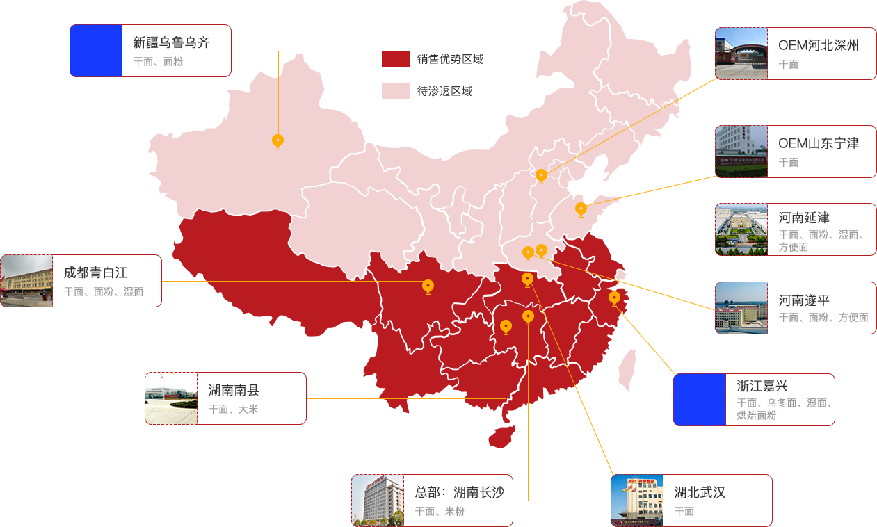 8大生产基地笼罩天下。推行面粉面条一体化模式,有用强化本钱优势,包管稳固高效供应。
